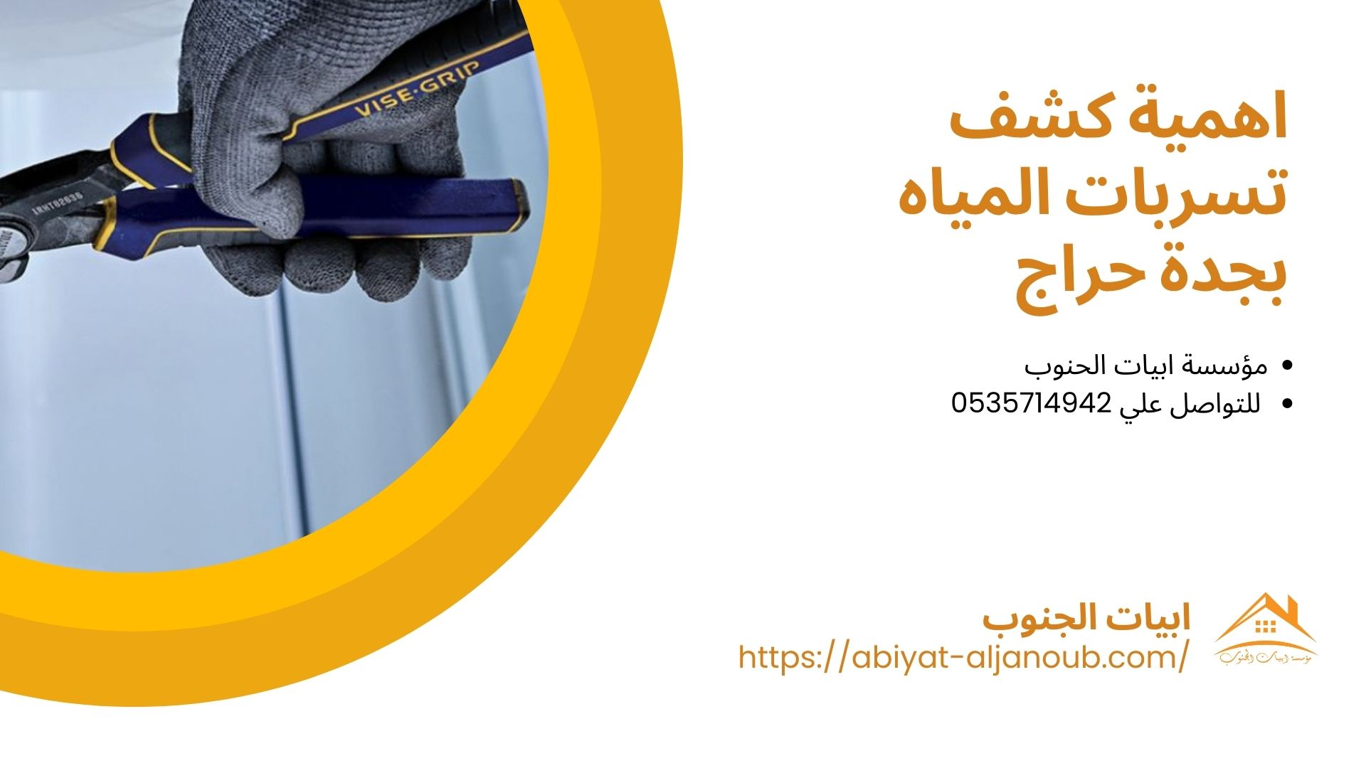 - ما هي أهمية كشف تسربات المياه بجدة حراج؟ يساعد الكشف المبكر على حماية المباني من التلف الناتج عن الرطوبة والعفن، ويقلل من التكاليف الناتجة عن الإصلاحات الكبيرة.